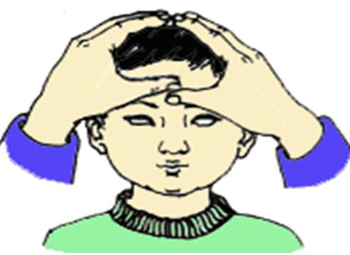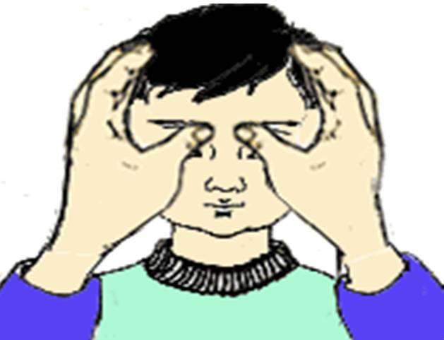 手法:先以两拇指端轻按两侧鱼腰,再从眉头起向眉梢作分推。