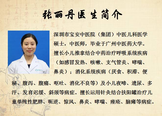 ▲作者:张丽丹 深圳市宝安中医院(集团)中医儿科医学硕士,中医师,毕业于广州中医药大学